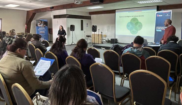 Y en la segunda jornada presentaron sobre trabajo decente, futuro del trabajo y transición justa: la directora del Observatorio Laboral y el coordinador, Luz Ferrada y Roberto Soto, respectivamente. Asimismo, estuvieron presentes Patricio Ulloa, de la Unidad Jurídica y Carolina Gallardo, Unidad de Relaciones Laborales, de la Dirección del Trabajo con una presentación de normas laborales referidas a la ley de 40 horas y ley Karin.