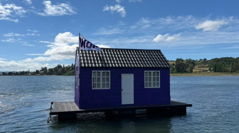 Vecinos y turistas del sector de Weltún, Chiloé, participaron de una tradicional minga de tiradura de casa por mar, una